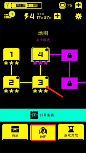 进入地图界面后,在界面上挑选要挑战的关卡,点击标有【3】的关卡,再选择【开始游戏】这个选项。