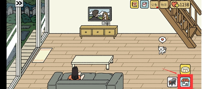 你可以在商店里自主挑选想购买的商品类别:要是打算买客厅相关的商品,就点击客厅商品选项完成购买(购买时需要消耗爱心)。