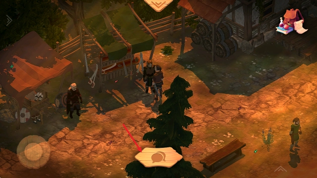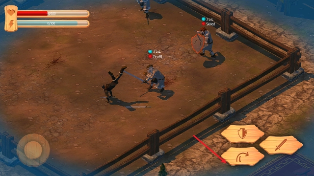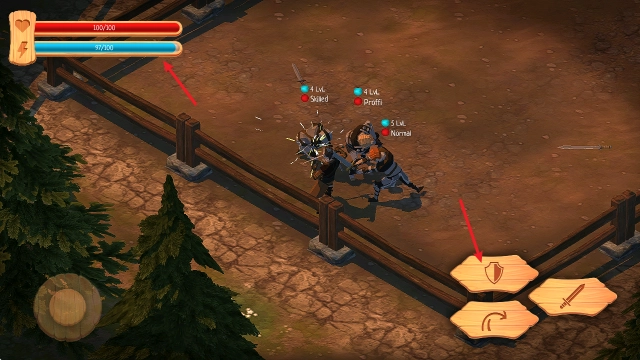 1、拖动左侧的摇杆能够控制角色移动,点击右侧的剑形按钮就能发起攻击。