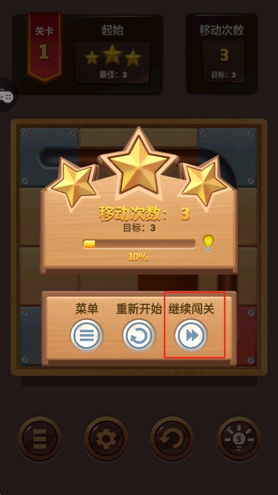 4、完成关卡后,选择“继续闯关”进入下一关。