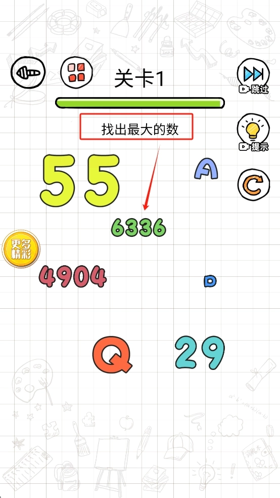 2、根据题目找出最大的数并点击选择。