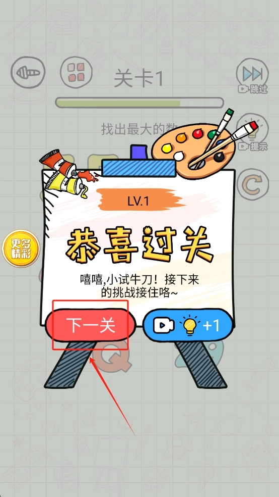 3、成功后,点击“下一关”继续游戏。
