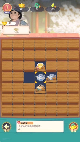 2.玩家将化身为客栈掌柜,通过合成各式酒水与菜肴来招揽往来客人,不断积累金币以升级店内设施,最终打造出一家独具特色的古风客栈。