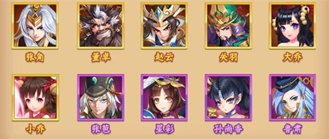 这套阵容以强力橙卡搭配优质紫卡,尤其适合小V玩家。核心优势在于收集门槛低:张苞、星彩、孙尚香、鲁肃等紫卡前期即可获取,而极品橙将赵云、关羽仅需充值月卡达到V2便能解锁。张角、董卓可通过登录奖励获取,大小乔则能从后续副本宝箱中集齐。短期内即可凑齐一套合击齐全的强力卡组,足以应对日常玩法。