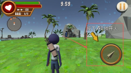 4、操作角色:在游戏过程中,使用屏幕右侧的按钮控制角色射击。