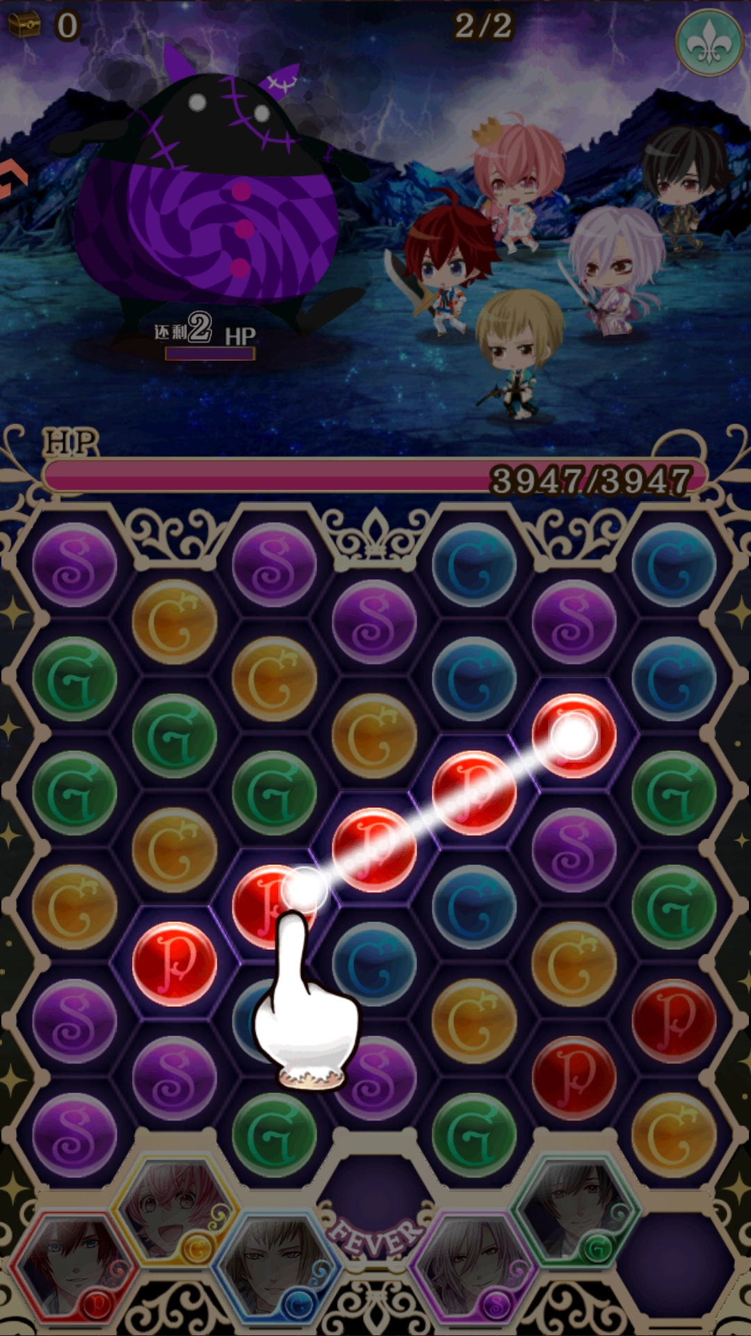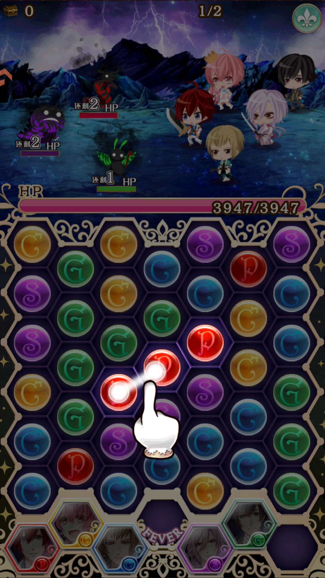 3、游戏采用三消的玩法控制角色战斗。