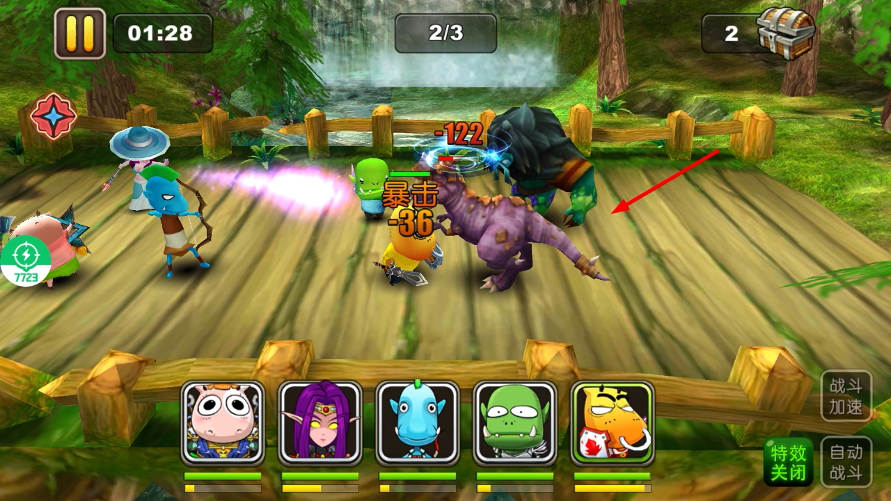 4、战斗中留意【暴击】伤害等战斗反馈,合理使用【自动战斗】或【特效关闭】功能,优化战斗体验和效率。