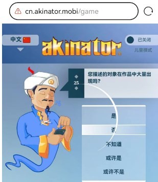 玩家可以先在心里选定一个任意事物,无论是人物、物品、电影还是其他类型都可以,接着针对灯神阿基纳多提出的一连串问题,按照实际情况用“是”或“不是”来回应。灯神会借助独特的人工智能技术与智能算法,根据玩家给出的回答展开推理,最终推测出玩家心中所想的事物。一般情况下,只需要十几个问题,灯神就能给出答案,而且准确率相对较高。