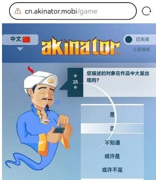 地址一:https://cn.akinator.mobi/game