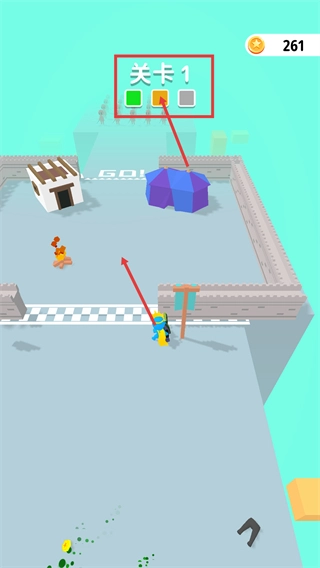 根据提示【拖动移动角色】,操控角色朝着【关卡1】的敌人区域前进,以此启动关卡进程。