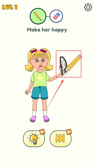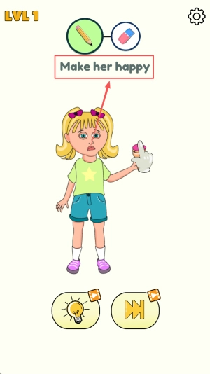 3.开始解谜:在关卡中,明确目标(例如“让她开心”),然后点击开始按钮,通过滑动屏幕进行绘制或擦除操作。