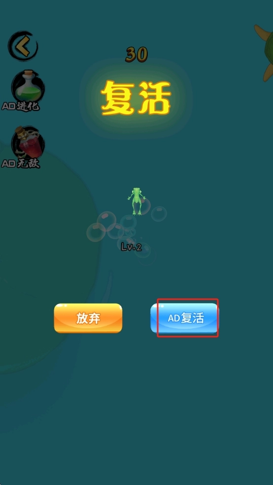 3、如果死亡,可以选择“AD复活”按钮,来复活。