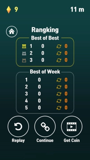 2、游戏进行时,操控角色移动来收集场景里的菱形道具,与此同时统计前进的距离(就像界面上显示的【1m】那样)。