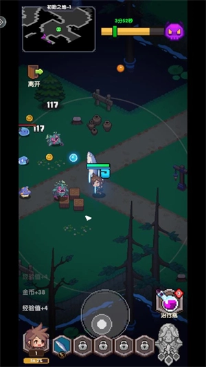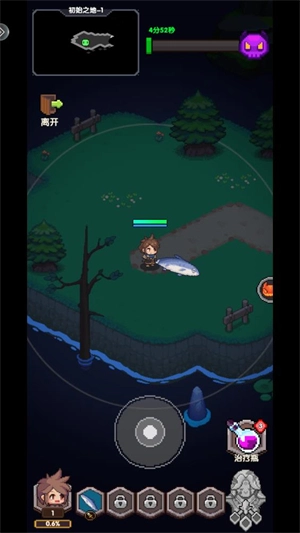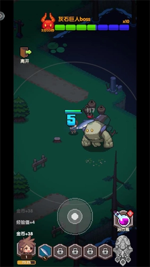 进入关卡后,滑动屏幕就能操控角色移动;当角色进入白圈区域时,会自动对怪物发起攻击。