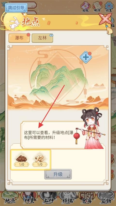这里能查看升级地点所需的材料,接着去完成任务获取材料进行升级。