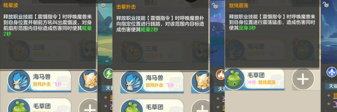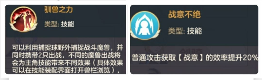 通用被动技能驯兽之力,简单来说就是驯兽师需要捕捉魔兽,最多同时出战两个魔兽,不同的魔兽出战会有不同的技能效果。