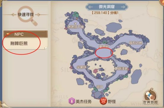 很多朋友不知道熊刷新的微光洞窟如何进入,可以传送到风车郊野,走到标识位置即可进入。