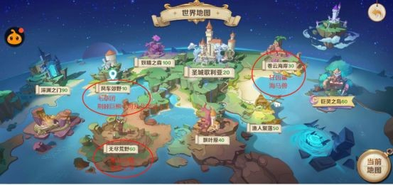 以上就是抓宠的一些技巧,下图为魔兽刷新点。主要分布在风车郊野、微光洞窟、卷云海岸、无尽荒野。