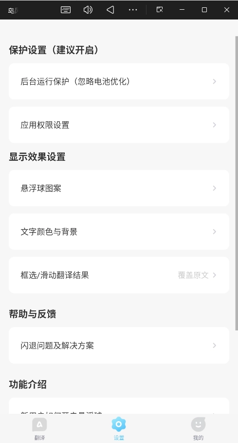 保护设置方面,为避免系统自动清理后台造成悬浮球无法正常工作,强烈建议开启“后台运行保护”功能。