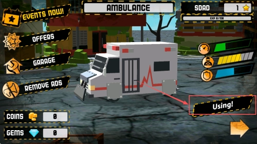 2、开始任务:点击“Using!”按钮开始使用所选车辆执行任务。