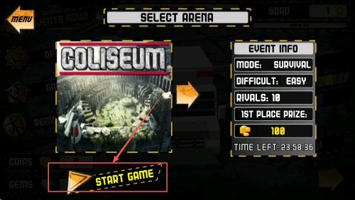 3、进入竞技场:找到并点击“START GAME”按钮,即可进入竞技场开启比赛。