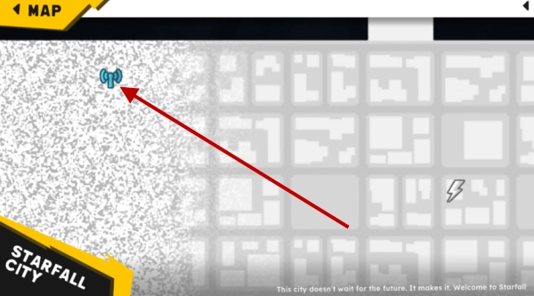 1、打开地图后,能看到左侧的地图区域被雪花状的图案覆盖,这说明信号受到了干扰,我们得前往信号塔那里去恢复信号。