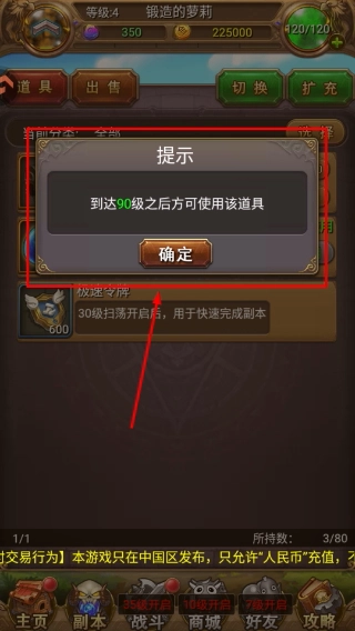 2、部分道具存在等级限制,像某些特定道具要求角色等级达到【90】级才能使用,建议提前查看相关提示,以免进行无效操作。