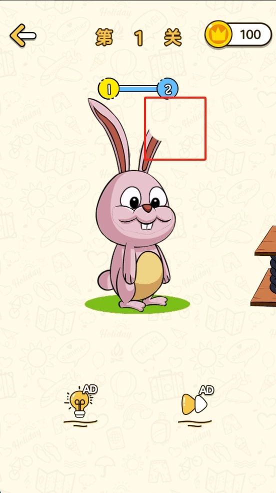 3、观察兔子头上的耳朵,画出相应的图形完成关卡。