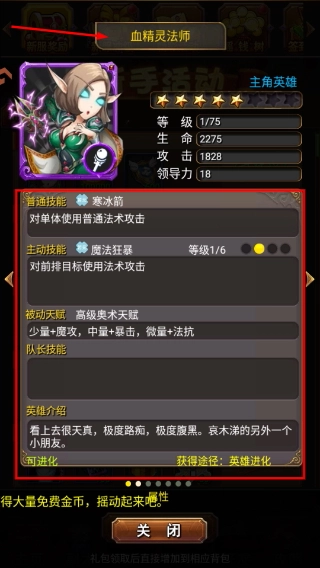 4、了解主角英雄【血精灵法师】的【寒冰箭】-【魔法狂舞】技能,合理搭配使用可增强战斗输出效率。