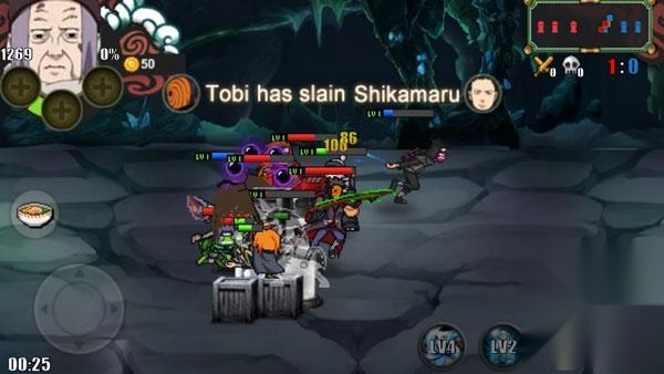 1、当角色受伤时,可以返回基地回血或者吃拉面,避免被对手打败。