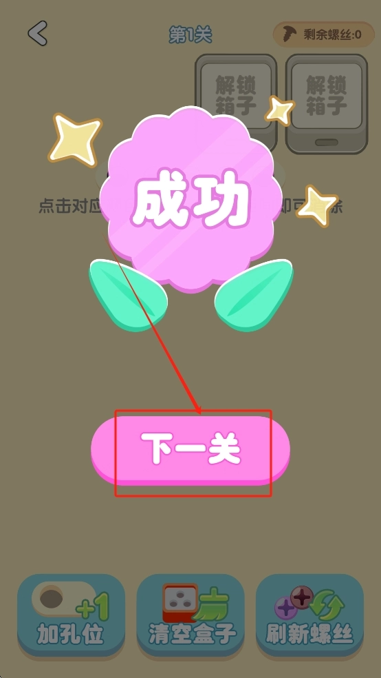 4、点击“下一关”按钮继续游戏。