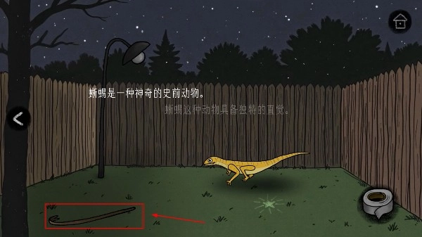 4、拾取庭院中的工具类道具,结合关于“蜥蜴”的提示,为后续与该生物的交互做准备。