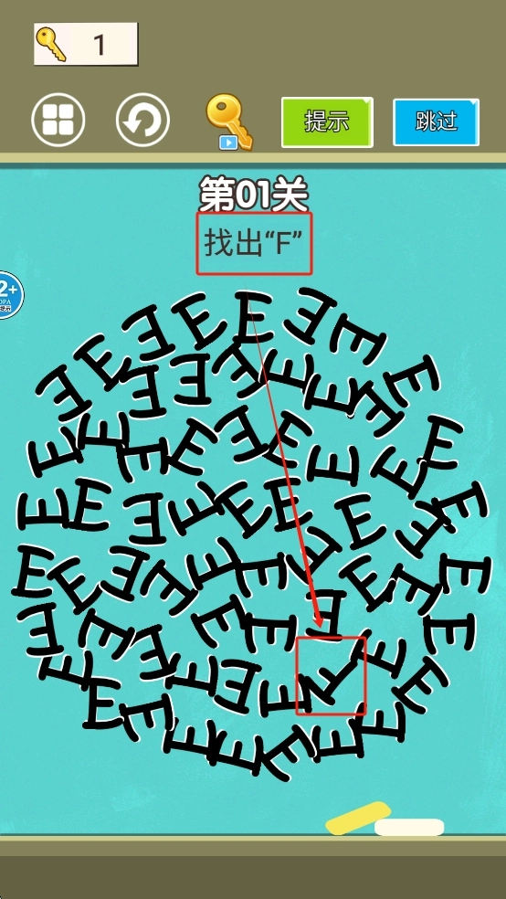 1、经典找字玩法:在4×4或5×5的文字方阵里,迅速点击那个与其他文字不同的目标字。随着关卡的推进,文字矩阵的规模会逐步扩大。
