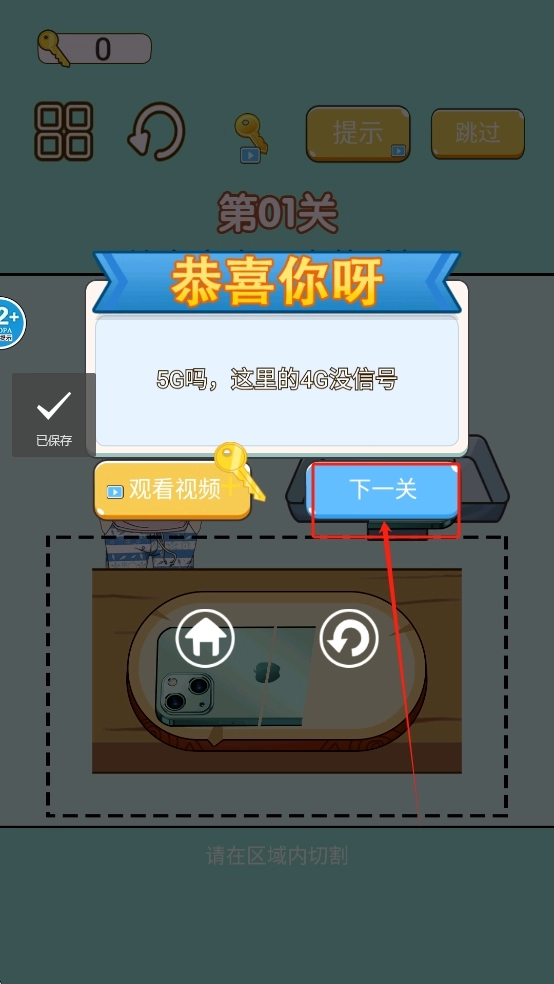 4、点击“下一关”继续游戏。