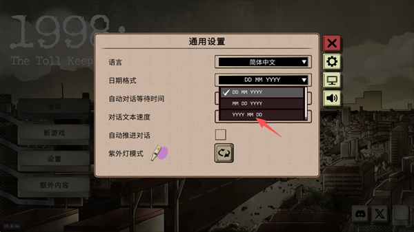 3、可以改变游戏的日期格式,将“日月年”更改成“年月日”,相信会让玩家更加适应。