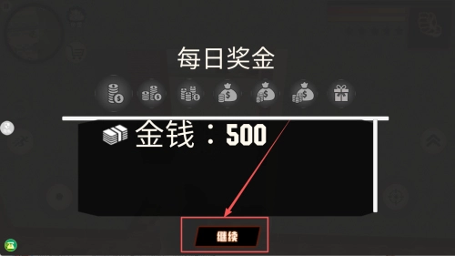 3、领取每日奖励:点击“继续”按钮领取每日奖励的金钱。