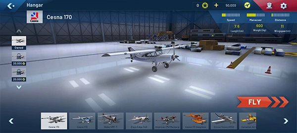 飞机的类型丰富多样,能够逐步解锁,从而完成更多的飞行挑战。