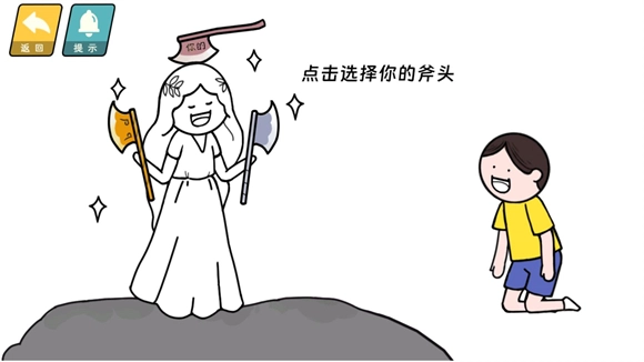河神:通关:点铜斧+主角下划。彩蛋:都不点斧头;点铜斧;点金/银斧;点河神