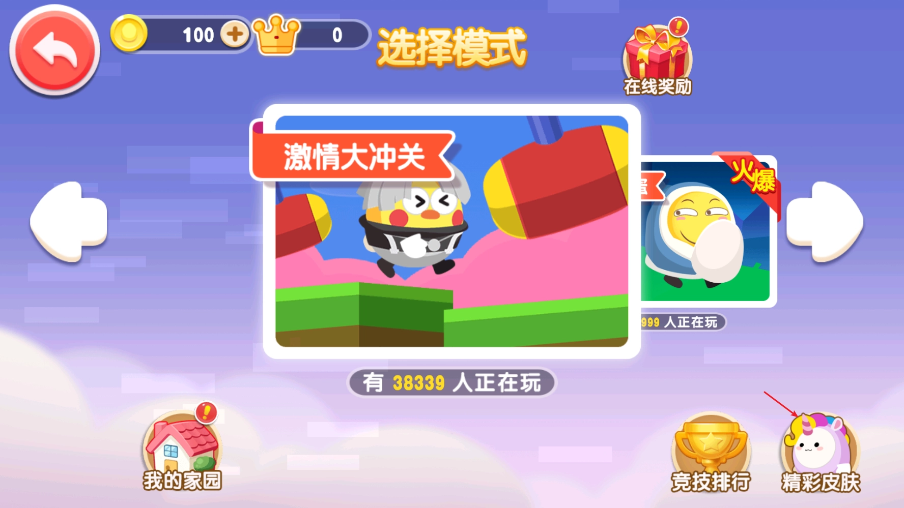如图,进入游戏后,点击精彩皮肤