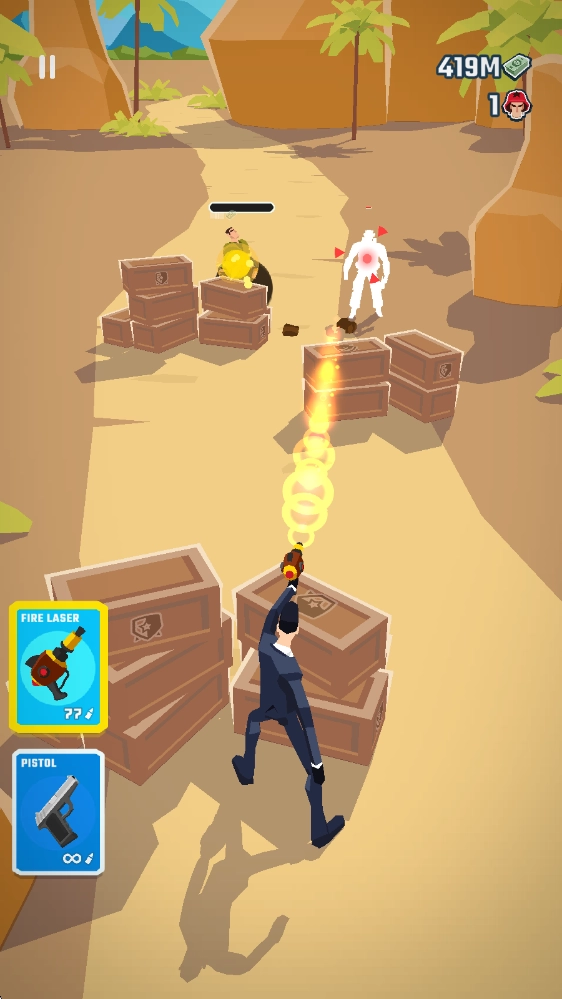 行动特工(Agent Action),这是一款卡通风格的射击闯关游戏,玩法简单又休闲,不同场景与角色的射击环节都十分有意思,能为你带来别具一格的趣味射击体验!在游戏里,玩家将化身一名高级特工,潜入各类场景去完成艰巨的特工任务。在此过程中,需要找准合适的射击时机,借助掩体的掩护来消灭源源不断出现的敌人,当击败所有敌人后就能通关并获取奖励。除此之外,玩家还可以通过闯关解锁更多武器和角色,让挑战过程的趣味性更上一层楼!