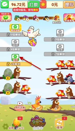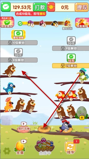 通过持续合成更高级别的小鸟,你将解锁更多树梢,提现比例也会随之逐步提高,助你赚取更多收益!