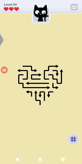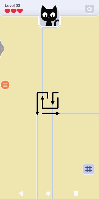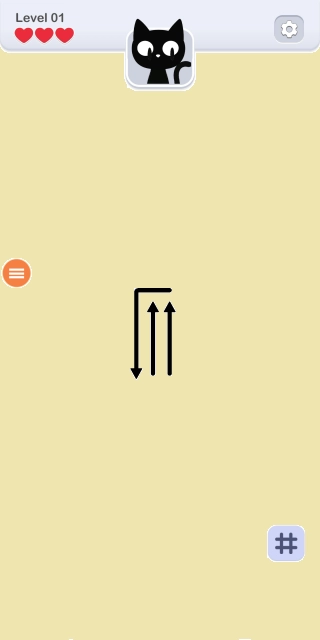 4.请注意,每个关卡玩家都拥有三次尝试机会,一旦箭头在移动过程中出现碰撞情况,就会扣除一颗红心,当所有红心都被扣除时,挑战便宣告失败!
