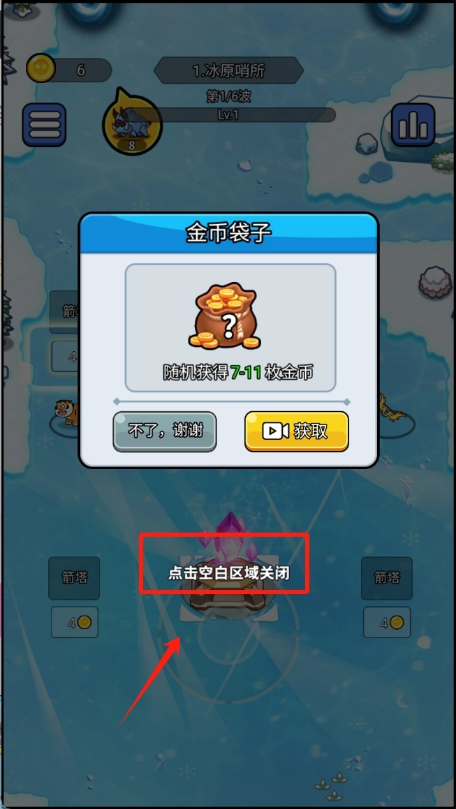 3、点击空白区域关闭提示。当出现提示信息时,点击屏幕空白区域可以关闭提示,继续游戏操作。