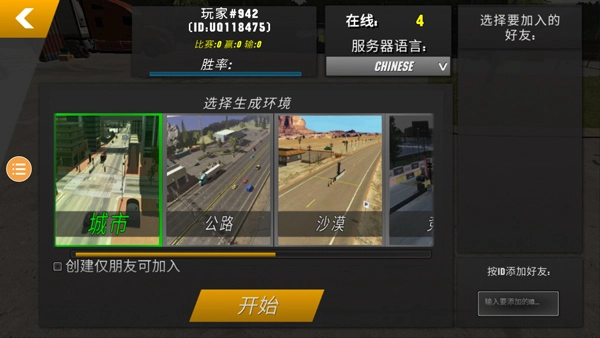 找到一张地图后点击【开始】按钮进入游戏,好友只需在右侧找到对应的ID并点击名字,就能直接加入游戏一起联机游玩啦!