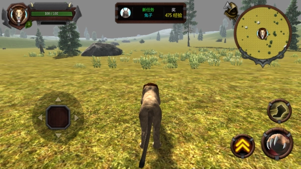 2. 如下面的图所示,画面的上方会显示任务提示,现在你要去捕猎兔子。完成这个任务后就能获得经验奖励。