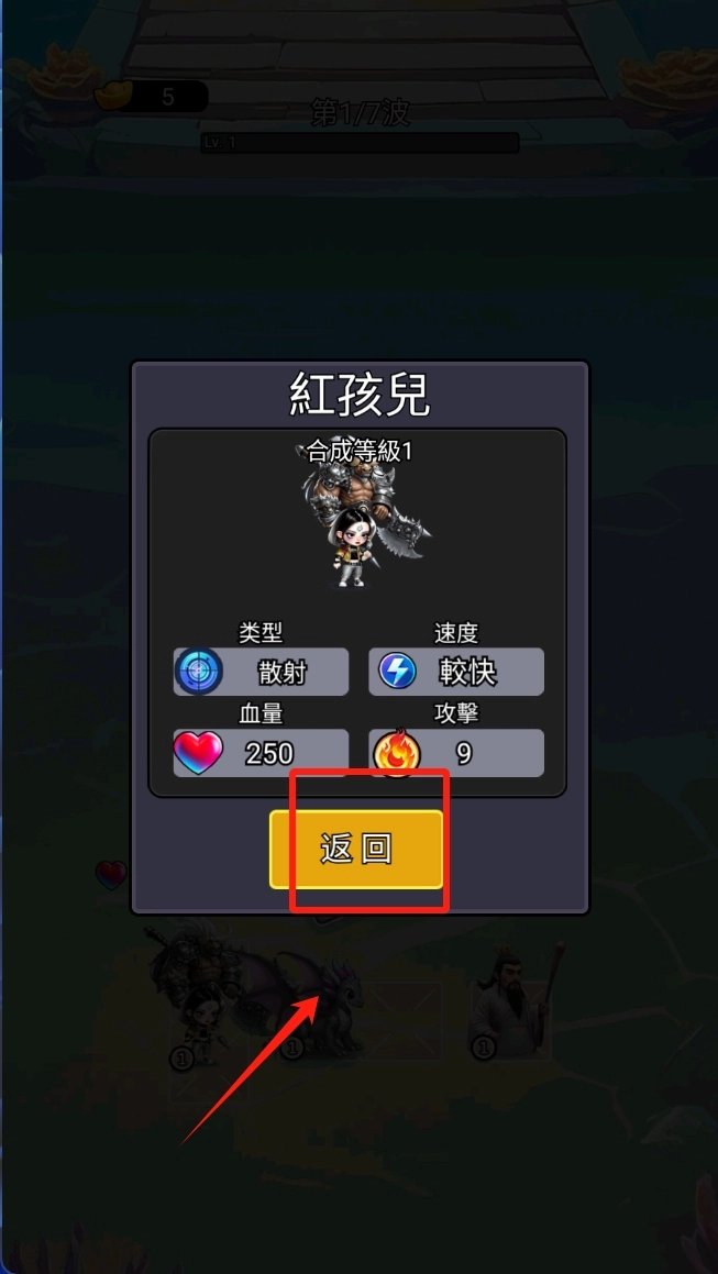 3、点击“返回”按钮查看英雄信息。在英雄选择界面,点击“返回”按钮可以查看当前英雄的详细信息和属性。
