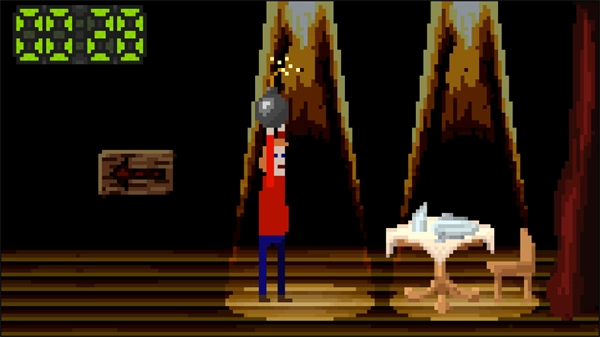 进入游戏的第一步,我们就看到了地雷和餐桌,地雷正在倒计时,这时候我们该怎么做呢?