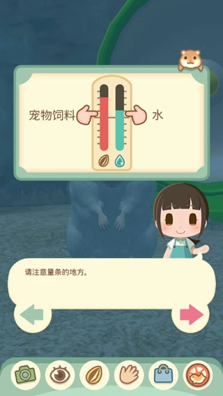 在游戏里,你得照料好小仓鼠的日常起居。除了要给它喂食、喂水,还得记得清理它的笼子。