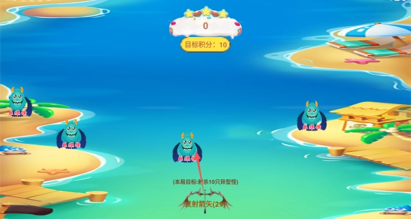 2、点击屏幕操控弓箭发射,精准瞄准目标怪物射击,避免误射其他怪物,确保分数正向累积。