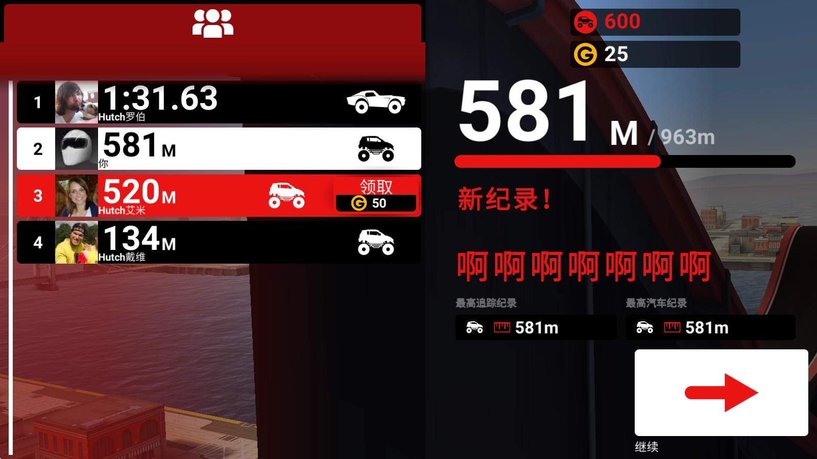 当汽车爆炸,或者汽车没油了之后就会结束挑战。